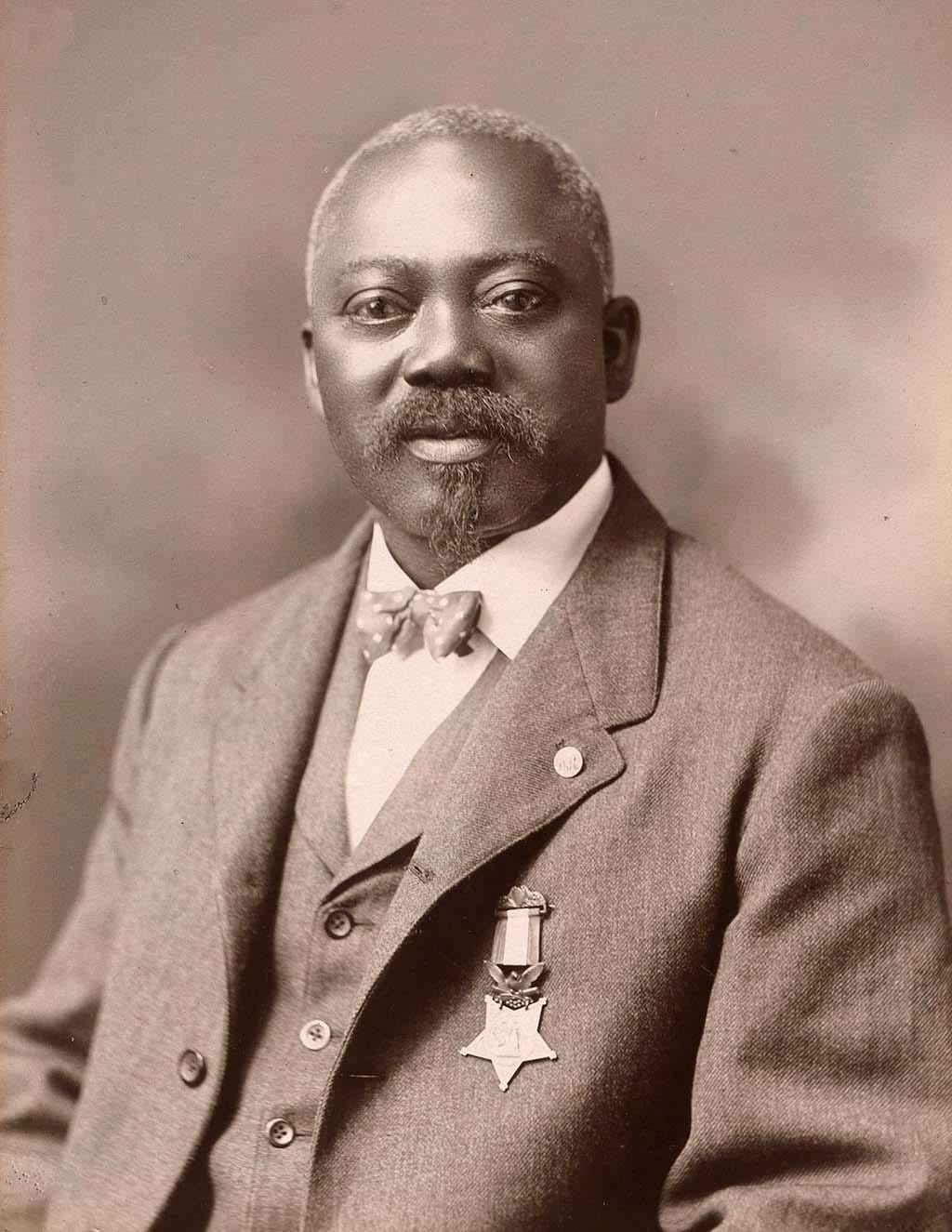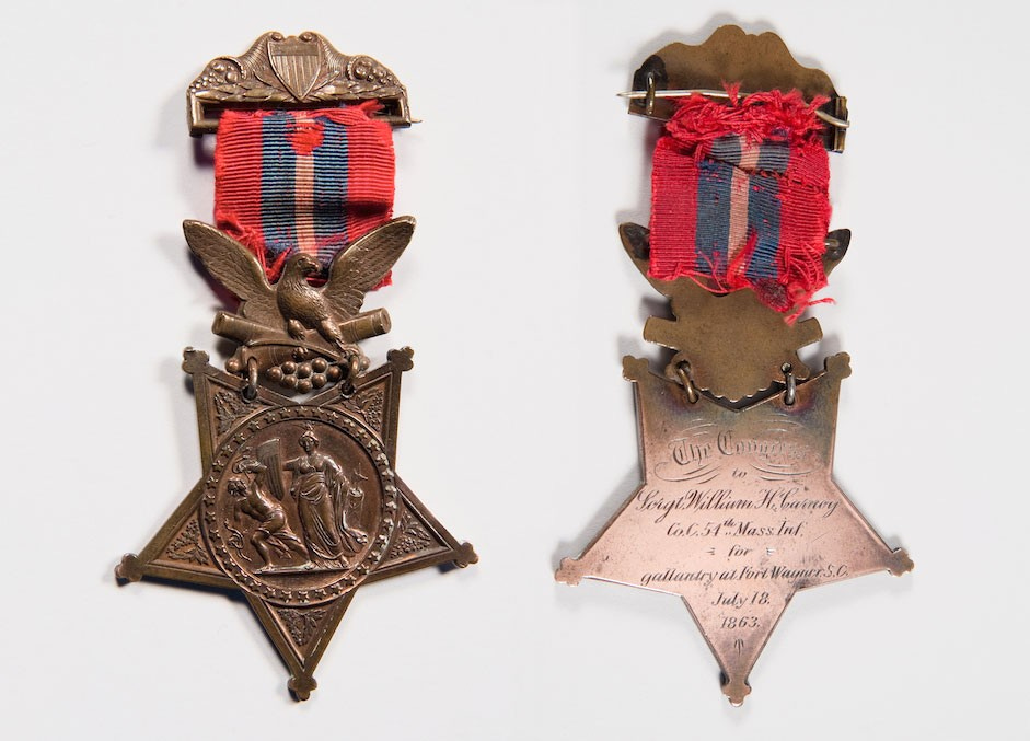 Carney’s bravery during the Civil War was finally recognized on May 23, 1900 with the Medal of Honor, making him the first black American to receive this prestigious award. His citation reads, “When the color sergeant was shot down, this soldier grasped the flag, led the way to the parapet, and planted the colors thereon. When the troops fell back, he brought off the flag, under a fierce fire in which he was twice severely wounded.”