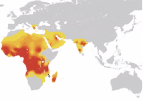 1. Would it be possible to stop selecting human characteristics such as skin color, hair texture, the size and shape of one’s nose and lips, and ancestral origins as signs of so-called “meaningful racial” difference? Indeed, modern science has determined that the biological conception of race is false, and that even diseases shared by members of ancestral groups from particular regions—for example, sickle cell anemia, which developed among ancestors who lived in malarial regions across the Mediterranean and Central and West Africa—are not exclusive to a “racial” group. According to the 2003 documentary, Race: The Power of an Illusion, in parts of Greece, 30% of the population carries the sickle cell trait. It is prevalent on the Arabian peninsula and in India, too (see the illustration below). The differences and similarities among human populations cannot be determined by a crude measure like “race.”