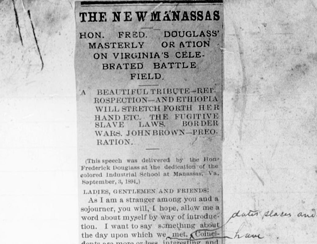 Editors’ note: What follows is an excerpt on “race” and “race pride” from a speech that Frederick Douglass delivered before a large crowd on September 3, 1894, less than 6 months before his death at age 77. The speech is titled, “The Blessings of Liberty and Education: An Address Delivered in Manassas, Virginia.” The occasion was the dedication of the Manassas Industrial School for Colored Youth. We produced this edition of the text directly from the typescript from which Douglass read and which he corrected in pencil.