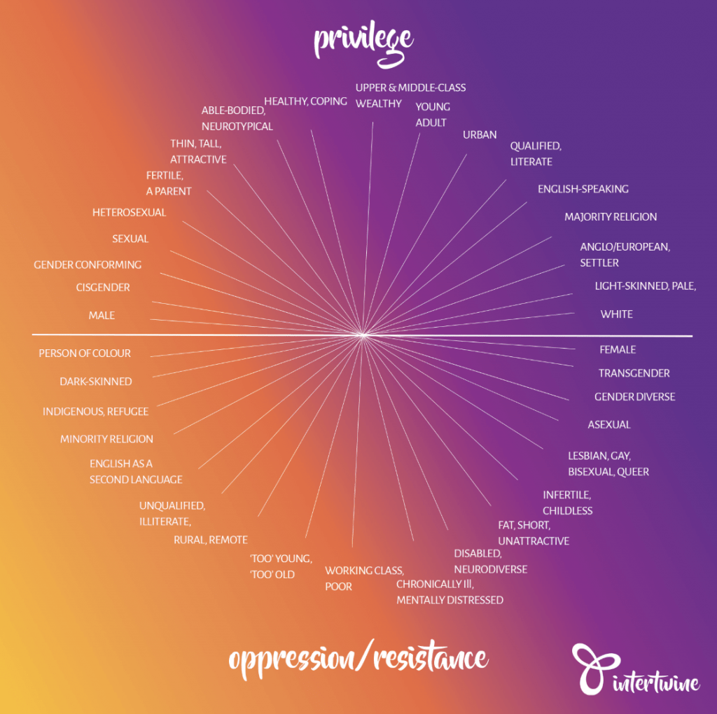 A commonly employed DEI framework for understanding American society and personal identity is the “oppressed vs. oppressor” dichotomy. In this paradigm, students are taught to divide people (and aspects of people’s identities) into one of two categories: they are either “oppressed” (or “resistors”) or they are “oppressors” (or more often bearers of “privilege” or agents of “domination”). See figures 1 and 2.