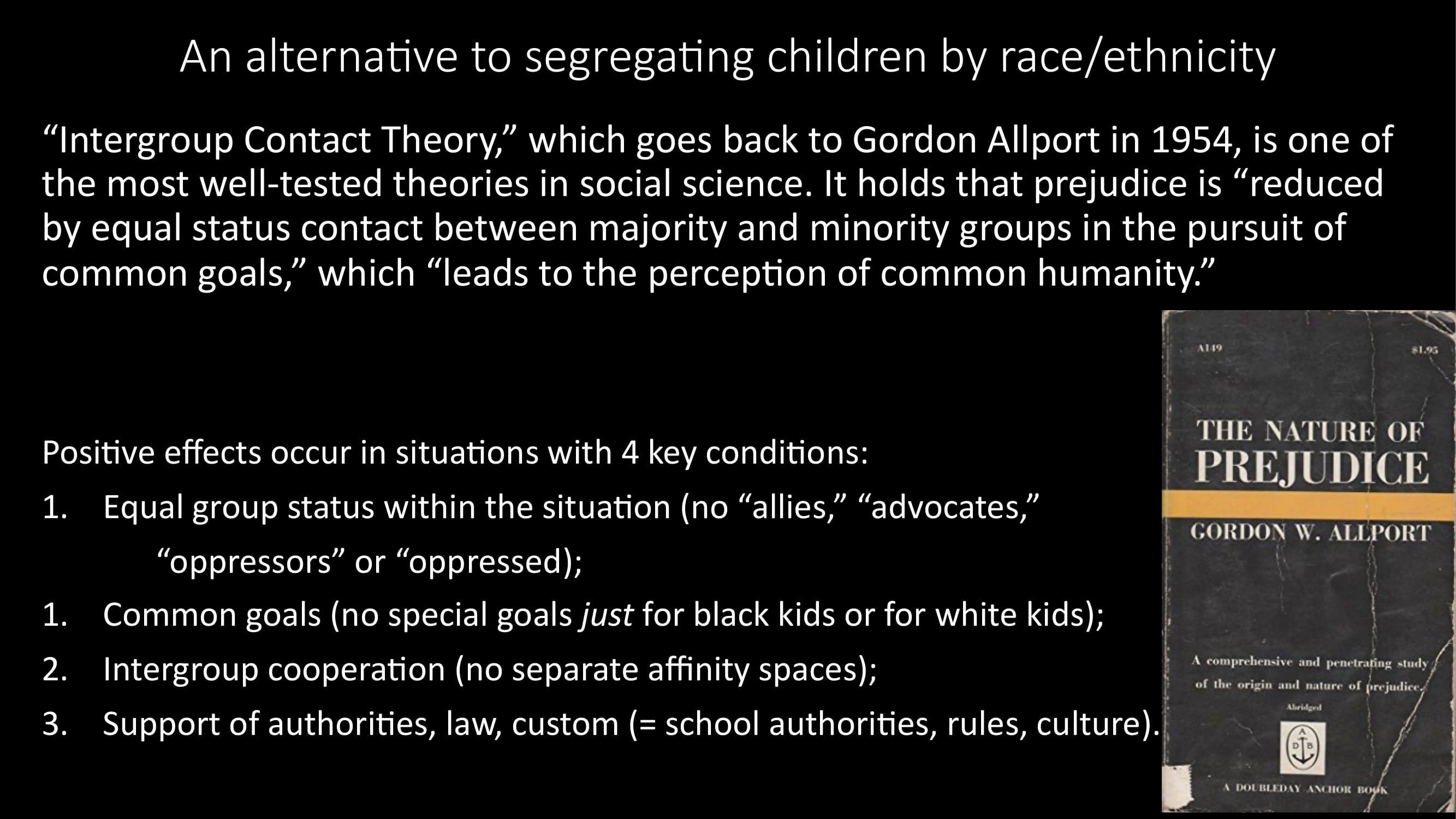 We would propose that this well-tested method is a promising alternative to segregating children and subjecting them to divergent curricula based on their race. Further suggested alternatives to traditional DEI follow in the coda to this article.