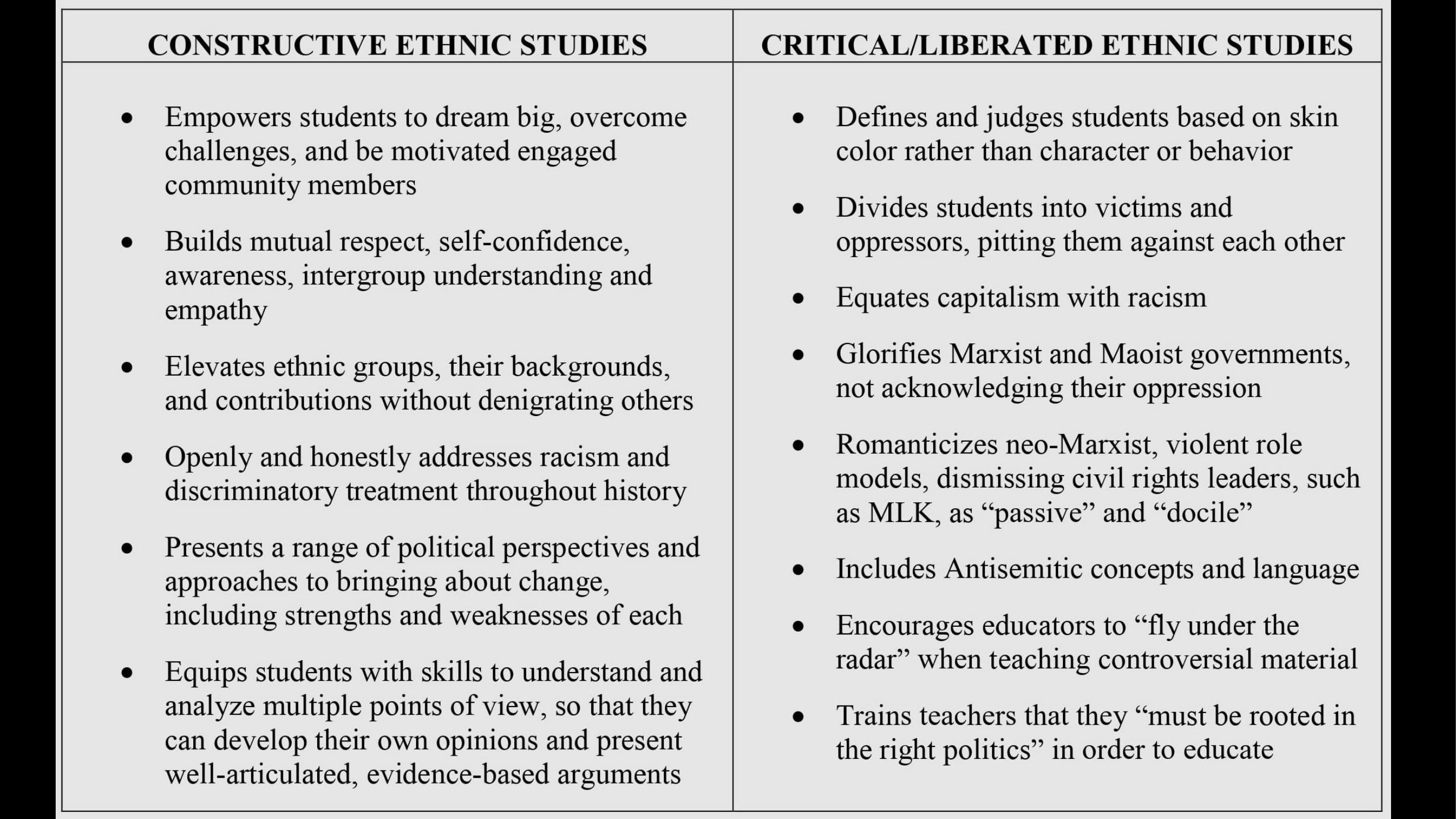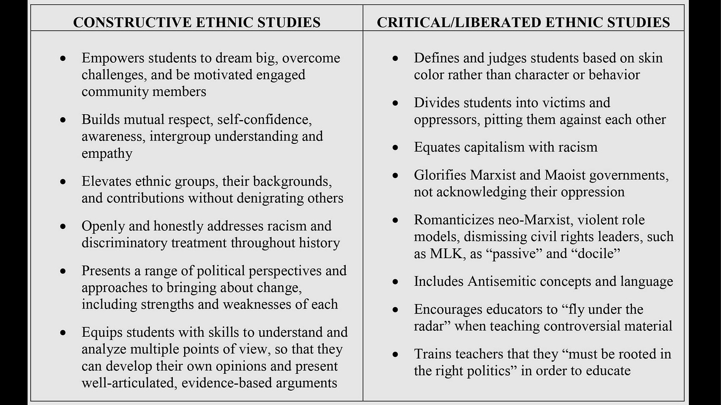 “Liberated ethnic studies proponents sideline racial progress and focus on immutable differences. Some dismiss individual merit, tolerance, the rule of law and compromise through reasoned discussion—values that prevent anarchy and authoritarian rule—as simply ways to maintain privilege. Most distressingly, liberationists’ emphasis on victimization narrows students’ perspectives and deprives students of the agency they need to reach their fullest potential.”