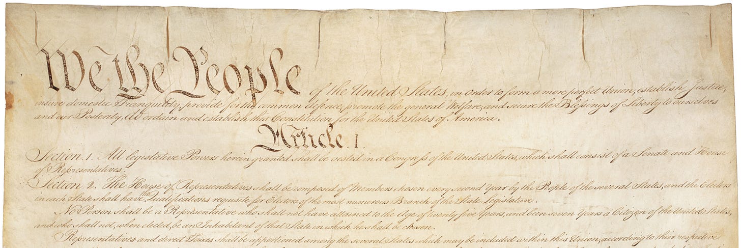 “We the people of the United States, in order to form a more perfect union, establish justice, ensure domestic tranquility, provide for the common defense, promote the general welfare, and secure the blessings of liberty to ourselves and our posterity, do ordain and establish this Constitution for the United States of America.”